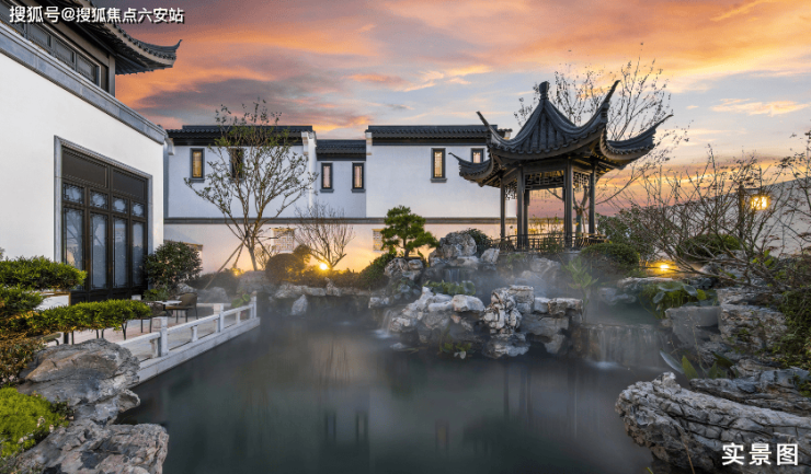 建筑融合苏派园林的曲径通幽与徽派建筑的精工细作,以“一轴·四境·九园”为骨架,通过叠石理水、曲廊通幽等手法,营造“登台观瀑、穿林望月”的诗意归家动线。