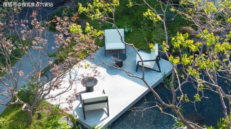 高达约8-12 米乌桕遮去建筑尖角,秋日娜塔栎的金红叶片添满暖意,林下会客厅随时满足社交、亲子小聚,轻松解锁舒适日常。