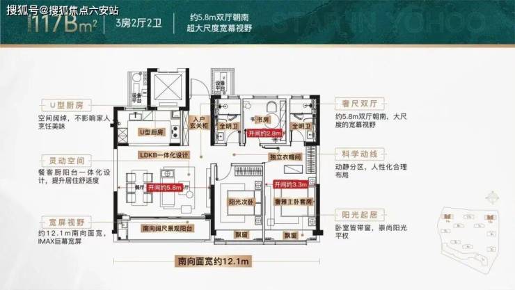 卧室皆带窗,崇尚阳光平权。约 5.8m 大气朝南双厅,朋友来做客超有面;动静分区也很懂生活,娱乐、休憩互不干扰。