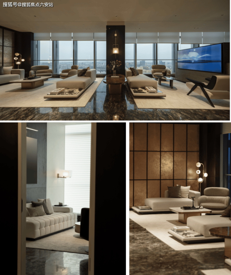 在装修细节上,项目提出独特的“三度标准”:材质温度上精选阿尔卑斯山云石,每块纹理都经过人工甄选;工艺精度上德国旭格系统窗的安装误差控制在0.5毫米以内;科技维度上全屋配备智能系统。