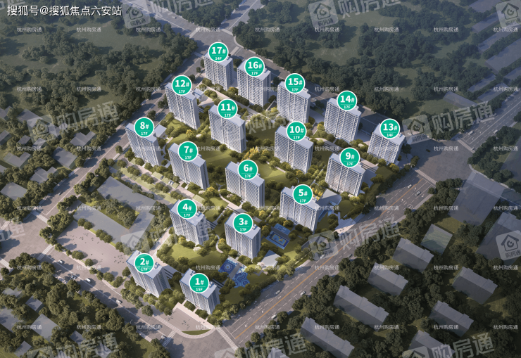 体量:总建面约14万方,容积率1.8,绿化率35%,17栋14-17层纯小高层社区