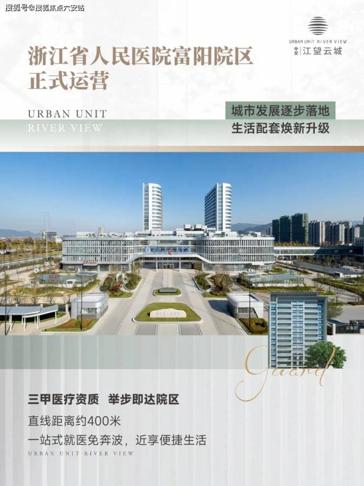 [医疗]:浙江省人民医院富阳院区(约0.4km距离,主体完工)——朝晖本部外第一个高等级综合性院区,前沿医疗资源守护家人健康。