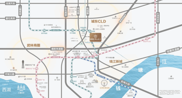 位置:位于上城区黎明路,紧邻杭州东站,地处“江河汇—武林中心—钱新二期”主城三角的交叠处。