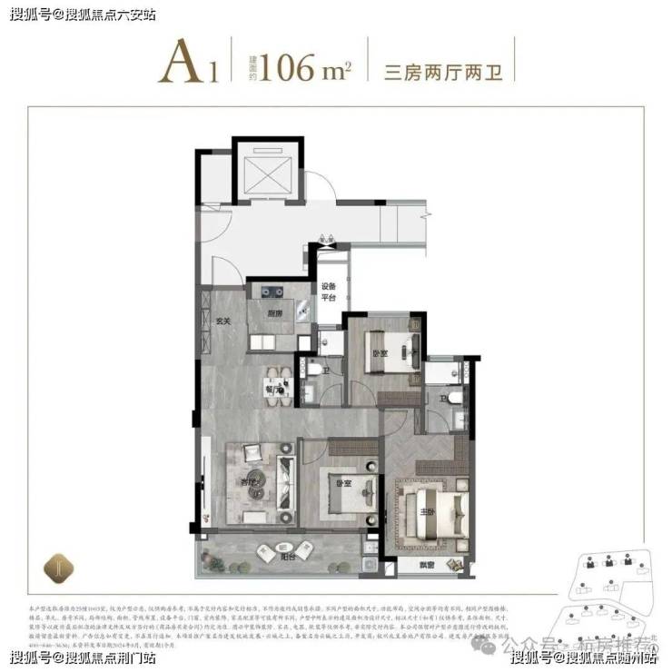 全能真三房:建面约106方三房两卫
