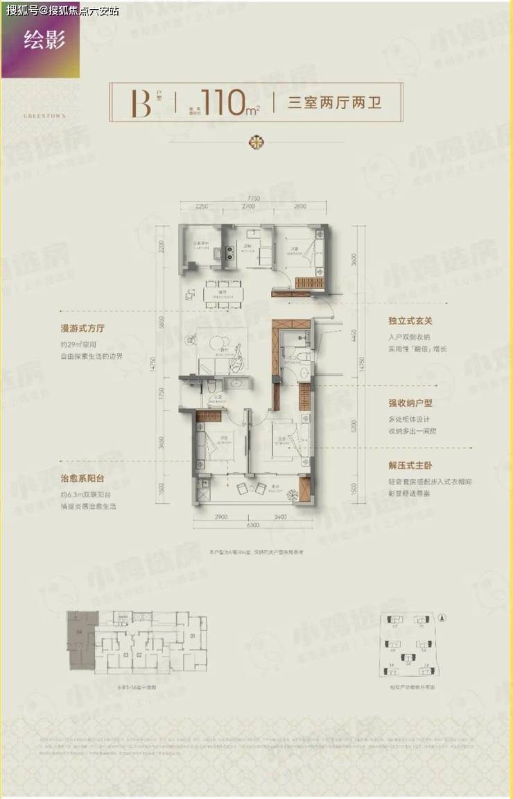 项目规划了7幢14-17F高层,项目架空层层高4.2—4.8米,房源层高3米。