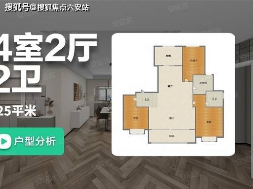 125㎡|3 房 2 厅 2 卫:阔绰三房,南北通透,双阳台设计