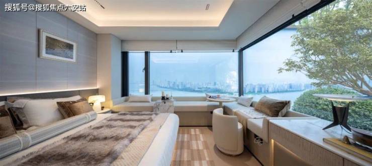 当你立于客厅,窗外的景色仿佛被装入一个巨大的天然画框,是传统户型无法赋予的奢侈。更难得的是,主卧采用270°转角飘窗设计,不仅让采光达到极致,未来还有可能实现"躺在床上观江景"的生活想象,做到了真正意义上的景观私有化。
