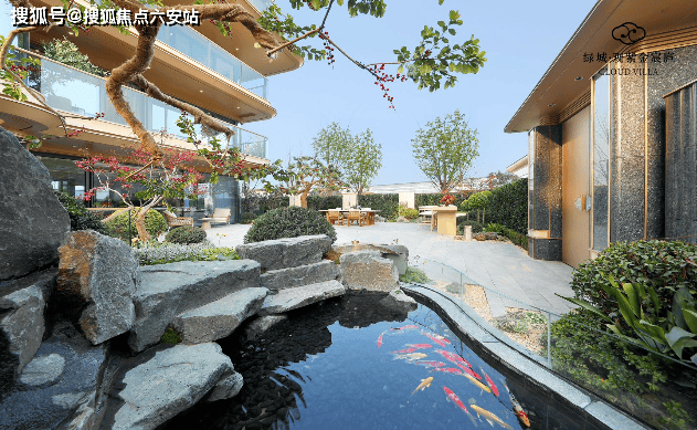 外立面采用香槟金铝板与曲面玻璃组合,造价较高。下沉式会所面积约3200㎡,种植350年树龄紫薇老桩,景观设计注重立体动线。