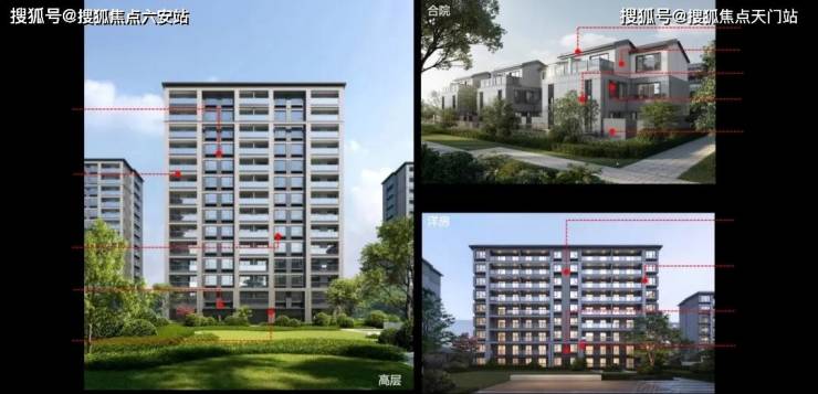 星缦和润城整体建筑风貌以精致有力的线条为主要构成元素,且具有简洁通透的立面。项目建筑设计合理呼应这两种城市设计元素。灰白对比的主色调,突出典雅的调性。保留宋式传统元素,并通过大面积玻璃、涂料、首二层石材+铝线条等简洁而现代手法,匹配现代品质生活。