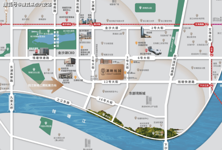 位置:钱塘区12号大街与3号大街交汇处,毗邻金沙湖公园及沿江湿地公园。