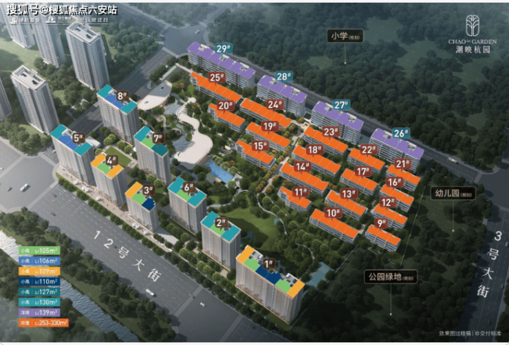产品类型:小高层(105-130㎡)、洋房(139㎡)、排屋(253-330㎡)。