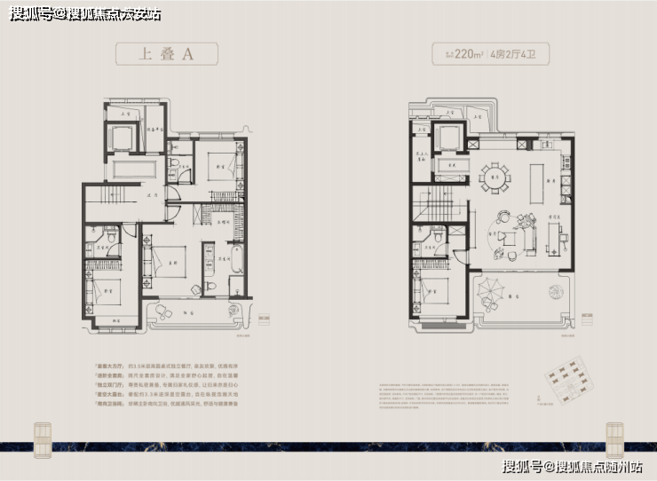 全套房设计互不干扰;下叠庭院上叠露台配置