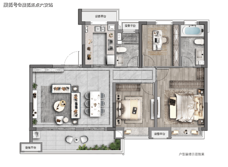 可以说,建面约118平的户型,在“亲民价”的基础上,进行了产品升维,空间尺度并不输部分改善户型。