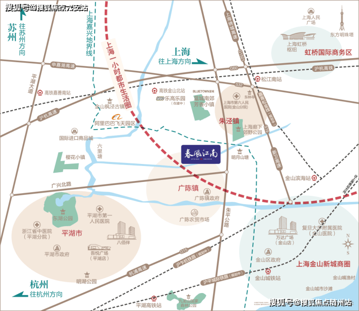 医疗教育:3公里内覆盖广陈中学、上海第六人民医院金山分院,社区内设健康管理中心,支持上海医保结算。