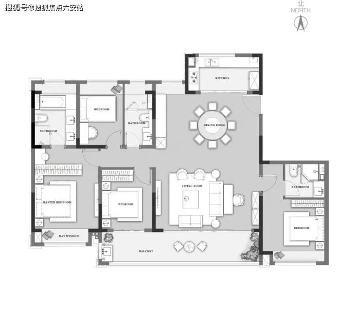 双套房设计,两个套房分布在东西角落,三代同堂也能很好地保护隔代隐私。