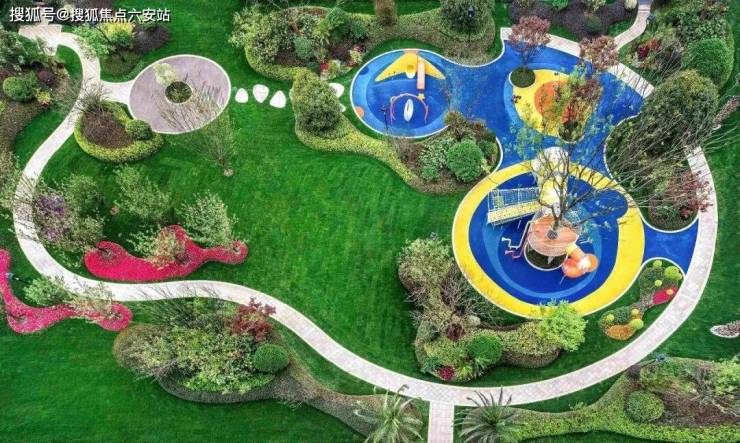 中心泳池西侧就是儿童乐园。整个儿童乐园从从孩子的视角出发,运用拼接撞色的设计,打造出一个小区专属的游乐场,滑梯、攀爬架、登山墙,可尽情释放孩子们一天的活力。