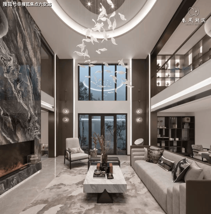 六重归家礼序:蓝城·春风湖滨规划了六重归家礼序,从入口落客区到中央水院,层层递进。总面积约900㎡的入口花园落客区,采用高奢酒店无雨式落客设计,松石对称迎宾,彰显门庭气度。归家大堂采用暖白色墙壁映衬暖光,巨幅落地玻璃将室内外景致交融,形成清朗雅致的休憩空间。