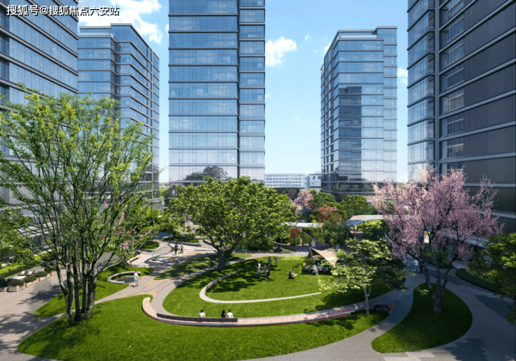 整个园区以围合式布局展开,七幢建筑借鉴中国古典园林的精髓,最大楼间距达到了63米,使得每栋楼都能享受到270°的开阔视野,仿佛是一座座隐匿于花园中的岛屿。