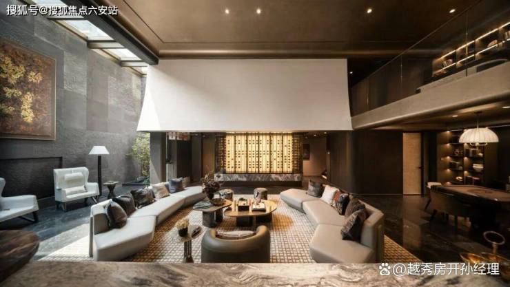 外立面融合秘色瓷青碧、天目盏星斑等吴越元素,采用伊朗红洞石+金色铝板,复刻钱王西园“五进礼序”,下沉式叠水庭院以飞瀑、古松、景泰蓝奢石勾勒“山水长卷”。