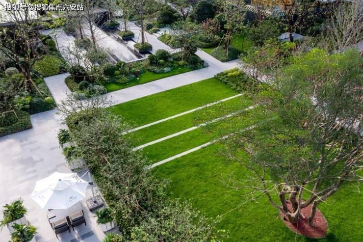 臻选75年“树王”丛生朴树,树高约12m,冠幅约8-10m,圆满宽广、浓密繁茂,寓意富贵绵延、家族荫庇;树前约300㎡阳光草坪,星光点缀拾级草阶。
