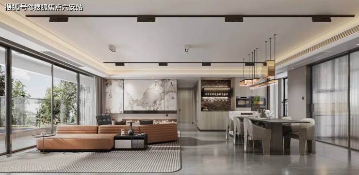 约6.2米面宽的客厅,餐客一体竖厅连接南向阳台,让空间和视野更加开阔舒朗,还有效地保证了生活动区空间的较大化。