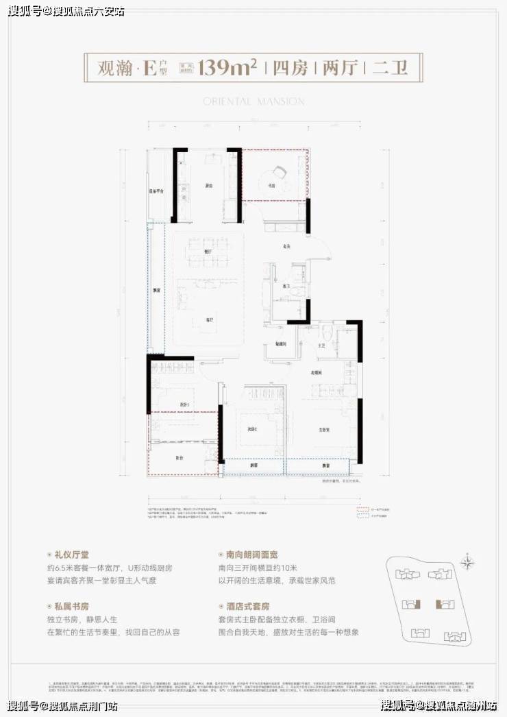 鸣澜里139平户型同样做的不错,打造四房两厅两卫,分为横竖两款,全部为边套,两梯两户设计。其中,139平竖厅户型亮点分析:①户型得房率超高达到约93%; 南向3个卧室,采光优且满足二胎家庭和三代同堂居住需求;③ 客厅面积达到约37平,足够大,同时额外配置约2.6平的储物间