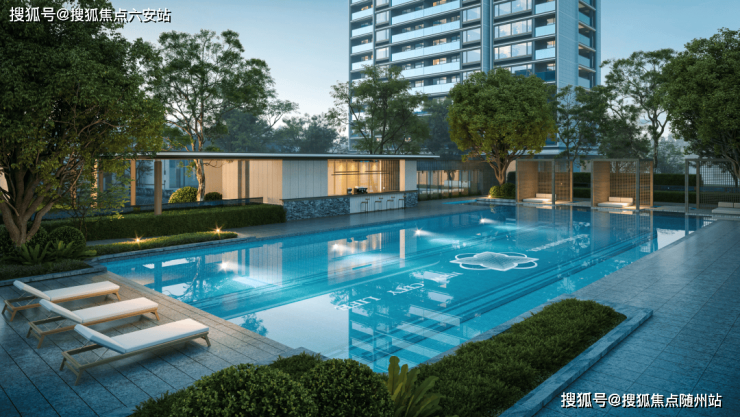 紧挨着阳光庭院的是约300多方的度假泳池,搭配泳池躺椅、泳池吧台和精心设计的儿童看护区等,打造悠闲惬意的生活场景。