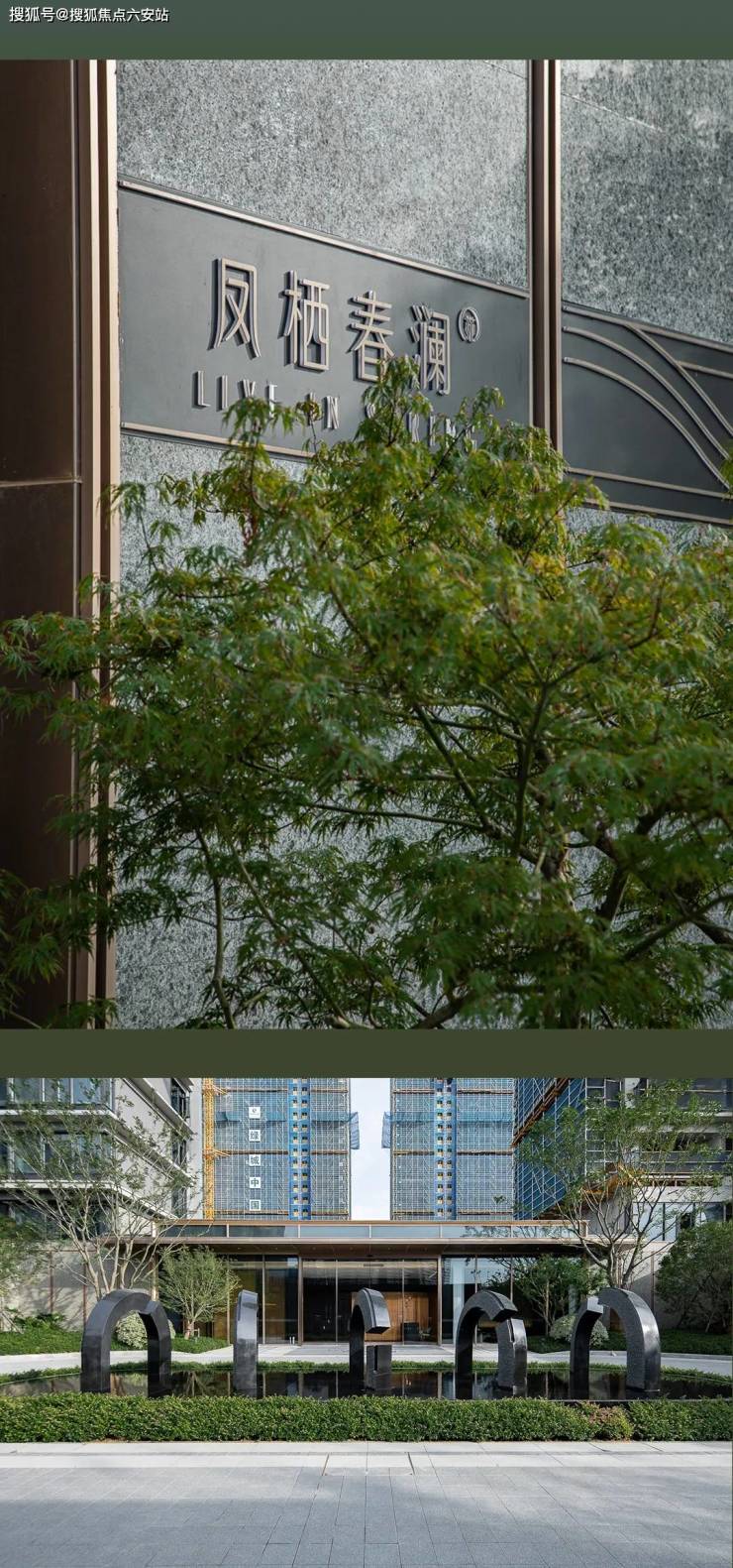 凤栖春澜总建筑面积约 22 万平方米,由 16 栋高层住宅、5 栋多层洋房及 1 栋社区服务中心组成,整体建筑风格采用现代简约与新中式元素相结合的设计。外立面以浅灰色真石漆搭配米白色线条,局部点缀深棕色木质格栅,屋顶采用平缓的坡顶设计,融入江南建筑的雅致韵味,与周边的绿地景观和谐相融,呈现出简约大气又不失诗意的视觉效果。