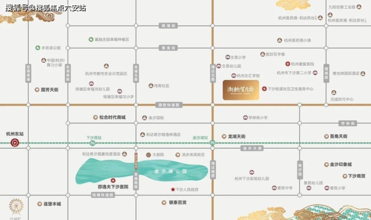 毗邻南北向主干道海达北路,下沙行政中心、商业中心、金沙湖、医疗中心等重要地标一路畅达;约300米德胜快速路,直连东湖高架,更有地铁1号线加持,高效链接全城。