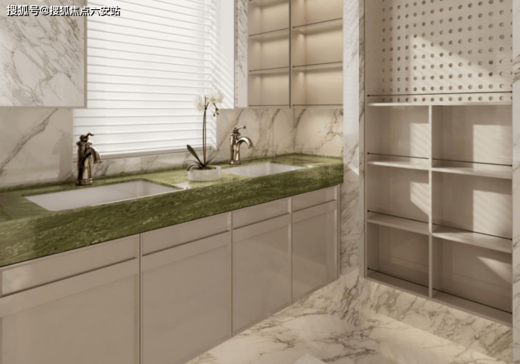 市面上许多豪宅都是样板间摆着看的,但项目这款岛台是交付标准。除岛台外,厨房还配置了空调入户玄关柜、餐边柜等都是交标,全屋多处收纳空间都给业主一步到位了,是真正为业主尊贵入住考虑。