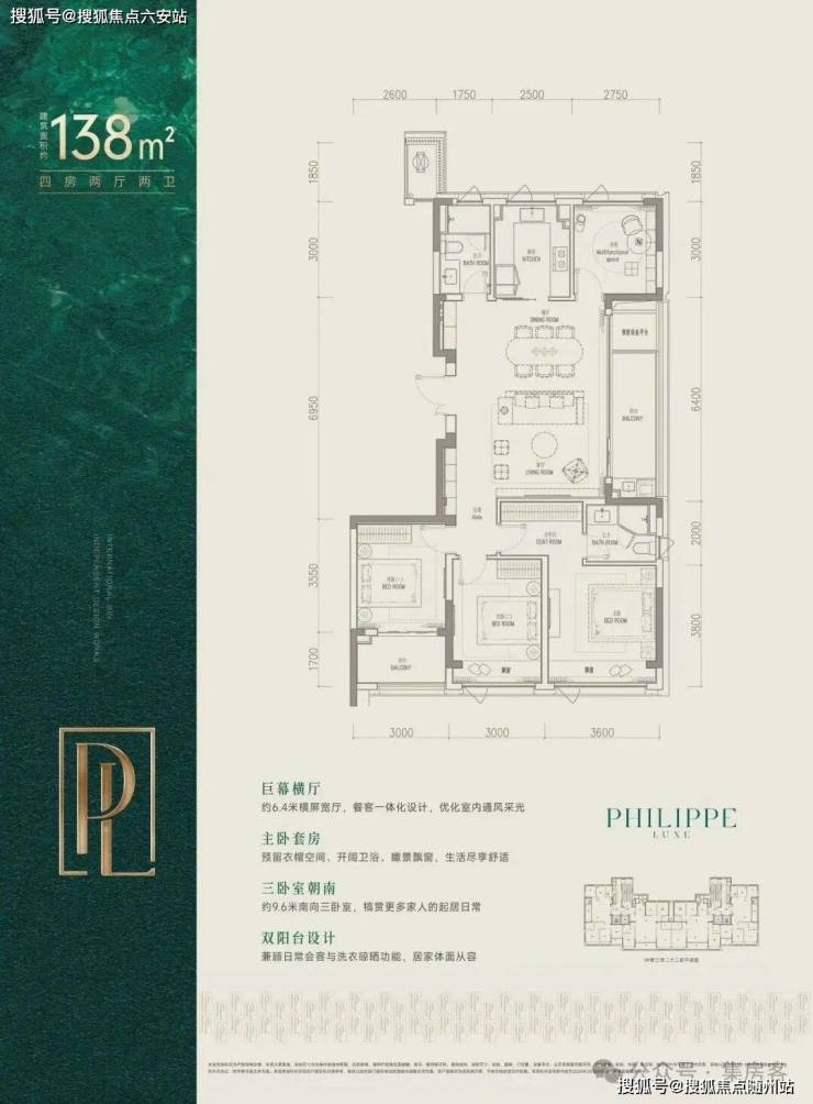 建面约138㎡是全明边套,三面采光,270°环绕视野。配上约6.4米横厅与大阳台,像一块被阳光浸透的生活幕布,日常就很有度假感。