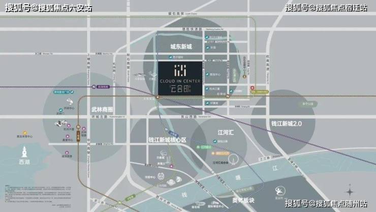 云合印中心,约400米(直线距离)接驳火车东站、彭埠站地铁双站点,连接地铁1、4、6、19号线(机场快线)四大轨交动脉,构筑杭城惟一的四条轨道交通和高铁一站换乘站