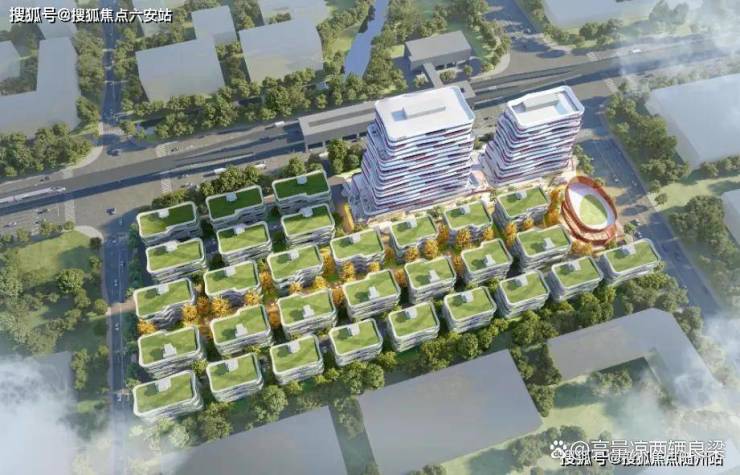 垂直森林建筑+2.5万㎡中央园林,种植香樟、樱花等乔木,打造“四季有景”景观轴;