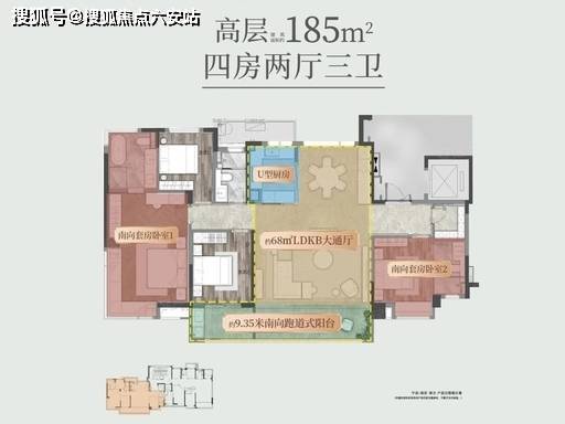 129㎡ (4 房 2 厅 2 卫):约 491 万,约 6.45 米横厅,U 型厨房
