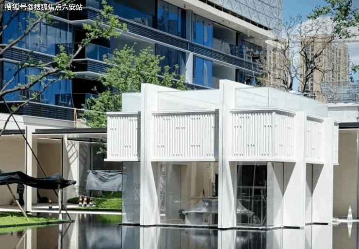 「安璞」的景观设计融合了东方诗意和现代造园手法,打造出“一轴两区四园两巷”的格局。
