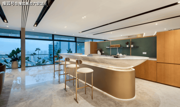 为满足习惯国际顶豪生活的海内外人士,EIC打造约200方超级会客厅,并以硅谷式大岛台为家庭社交中心,匹配约24米巨幕落地玻璃和270°观景视野,呈现家族聚会、休闲观景的头等舱。