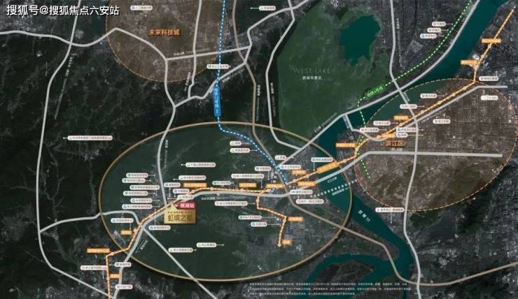 东西向横穿银湖科技城的两条交通干线:地铁6号线与彩虹快速路,将银湖与之江、滨江连成一线,都在金帝·虹缤之都面前留下了接口。