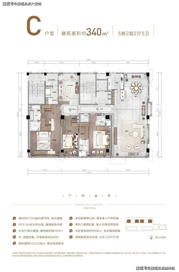 5. 宽敞户型设计亮点:315-340㎡空间自由格局