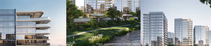 「都会浓荫」:北望邻里中心(在建),南侧与东侧均为引水河水系,直距钱塘江仅约700m,可达钱塘江古海塘遗址公园、之江路沿江景观带、六堡运动公园、七堡文艺公园。