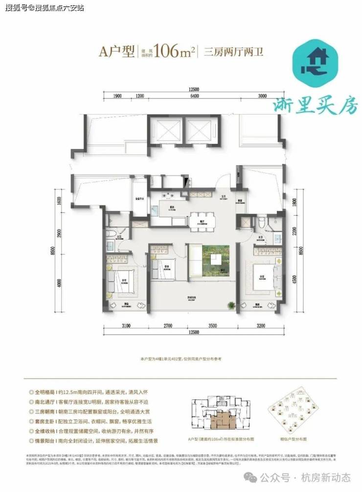 亮点:边厅设计+双主卧套房,北向X空间可变,三代同堂无压力。