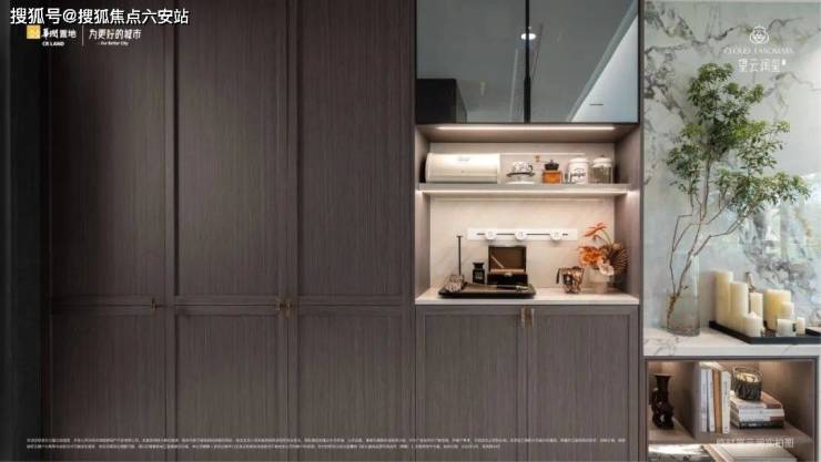 建筑立面以米色仿石铝板为基调,通过香槟金与深灰色铝板的精密交织,在晨昏光线中呈现云影掠空的动态韵律。作为视觉焦点的【云奕玺冠】美学塔冠,以皇冠般的造型矗立楼宇之巅,既延续了杭州奢宅翡云润府的公建化立面基因,又以几何线条的现代解构重塑城市天际线。室内空间采用莫兰迪配色的艺术化表达,LDKB一体化洄游设计打破传统格局,使餐客厨阳台形成无界贯通的奢阔场域。从横向金属格栅隐藏移门的三重工艺,到白金沙岩板通铺的隐形无缝接缝,每个细节都体现着对居住美学的极致追求。