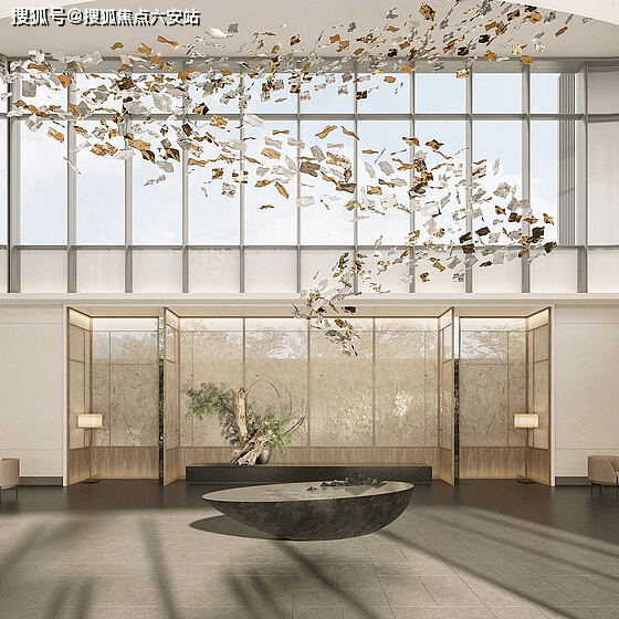 区别于传统塔楼布局,项目以45°倾角围合建筑群,打造1.4万方“江潮绿洲”围合园林,由泰国景观大师POK操刀,以钱塘江潮为灵感,规划下沉庭院、架空层泛会所及全龄活动区,推窗见绿、下楼入园,实现自然与生活的无缝融合。