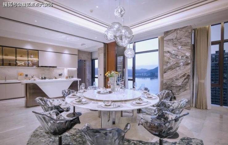 相较于周边区域的江景豪宅,如水晶澜轩的378㎡最大户型,其最大厅面积仅为40㎡,蓝城英冠·滨悦城无疑更胜一筹。其约4.1米的层高设计,不仅在垂直空间上进行了充分拉伸,还与横向铺展的江岸线形成了绝美的呼应,充分展现了“开窗放入大江来”的恢弘气势。