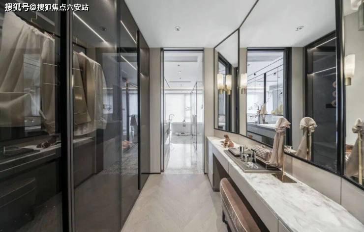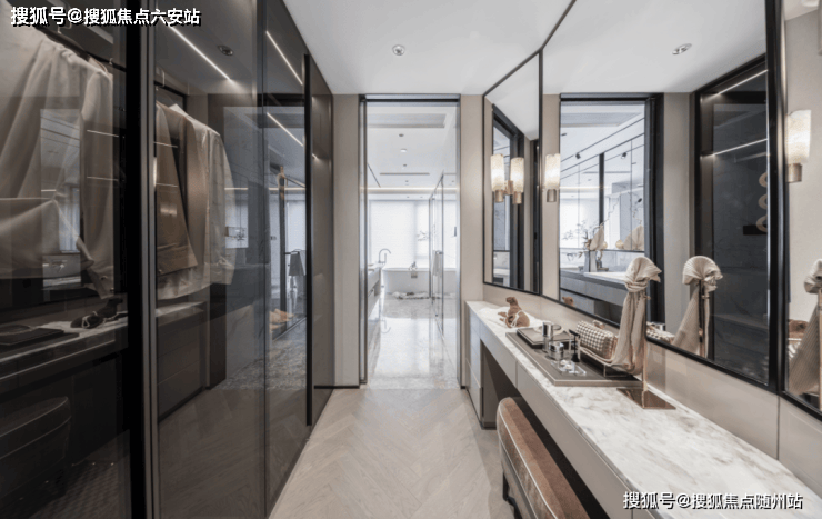 双洄游动线卫生间如私人SPA,整面墙梳妆台让晨间仪式充满诗意。深浅皮革与金属嵌条在暖光中交织,营造包容万物的气韵。在这里,每个细节都经过精心设计,从床品的触感到香氛的萦绕,都只为营造极致的舒适体验。