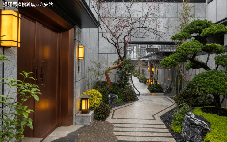 保证绝对的隐私性和生活品味。台阶、格栏、水系、亭台、树柏,层层递进,涵雲軒在追求美学的同时,做出了真正意义上的“隐奢”入口。外界无法一眼窥尽全貌,更添高门大户之神秘感。