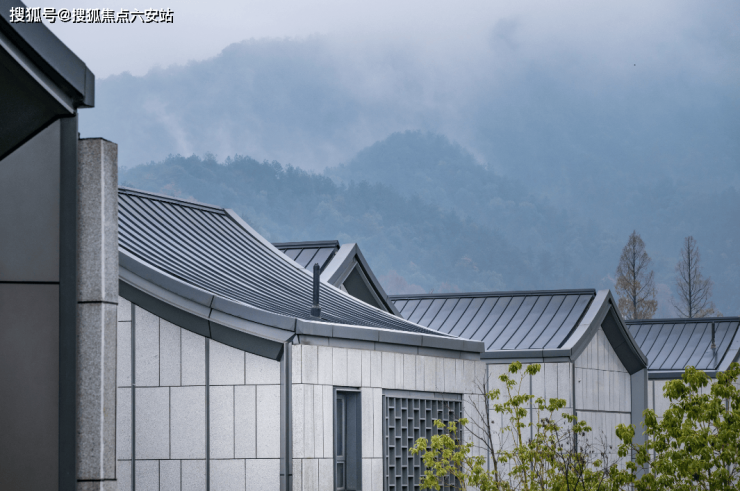 涵雲軒的建筑,吸收江南院落的坡屋顶、山水景墙等中式风骨,同时金属屋面、大面积玻璃幕墙与美国白金石的创新加入,让整个建筑群多了几分国际感。
