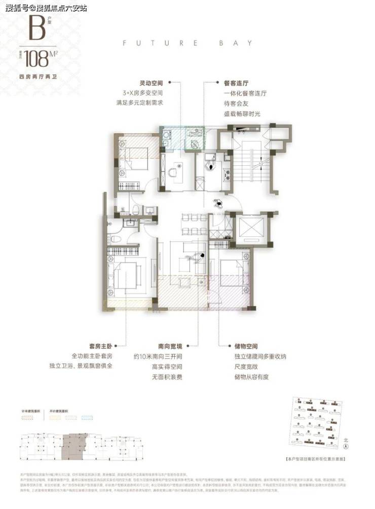功能性最大化,适配全龄需求。约108㎡户型设计了“3+X”灵动空间,可变为四房,满足成长型家庭需求。改善型户型更是亮点突出,约139㎡户型拥有约15.9米南向面宽,近五开间朝南,三南卧设计+动静分区,主卧套房设计保障隐私。