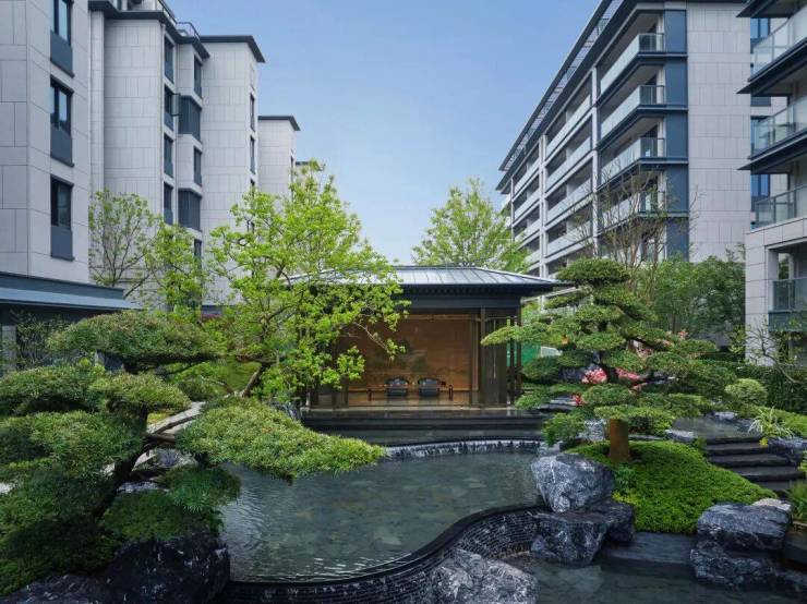 园林诗意栖居:借鉴古典山水意境,打造“两轴三园七居”格局,融合曲径、池山、亭廊,搭配约800米滨水栈道,实现“推窗见绿、移步换景”;