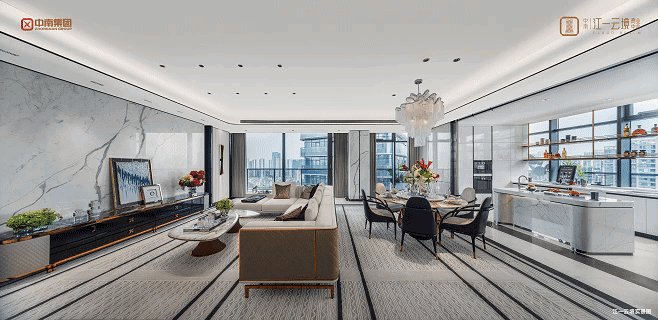 更难想象的是,在当前杭州大平层产品趋同的背景之下,中南·江一云境,不惜重金首创三层奢装入户大堂。地库大堂可以做到奢装入户、三重空间营造,地面奢石和地下挑高空间造景,每一重皆是奢华的礼序!
