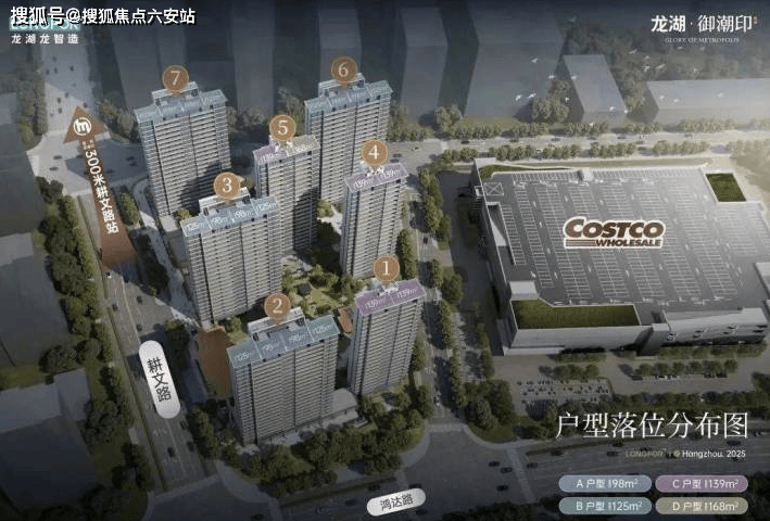 作为龙湖御系TOP级作品,御潮印落子钱江世纪城未来总部社区核心,总建面9.38万方,容积率2.0-2.5,规划7幢22-24层高层,494户纯改善住区。主力户型建面98-168㎡,其中98㎡三房两卫以L型衣帽间+灵活隔断设计实现空间极致利用,168㎡大平层配备270°观景阳台,全系产品南向双阳台+多飘窗设计。